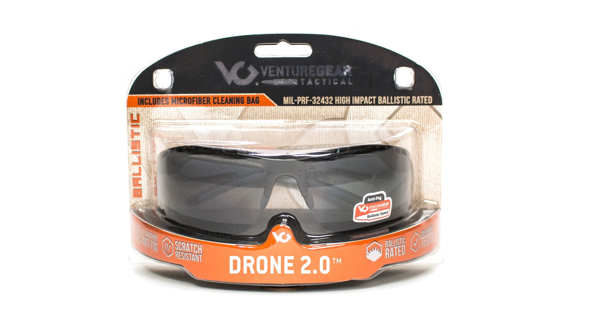 Packaged in a Venture Gear Tactical clamshell and includes microfiber cleaning bag.