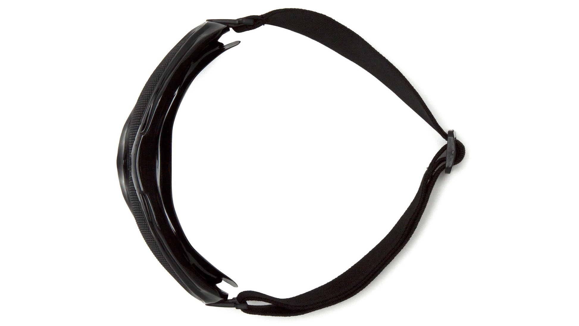 Low profile design with wide elastic strap for secure fit.